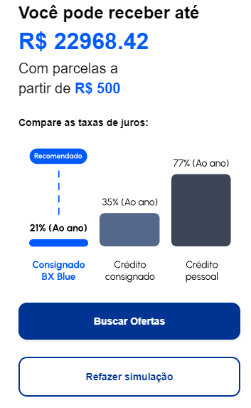 O empréstimo consignado Bx Blue é um tipo de crédito onde as parcelas são descontadas automaticamente do salário ou benefício do solicitante.