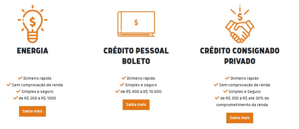 - Depois, selecione a modalidade de empréstimo que mais se adapta às suas necessidades e clique em “Saiba mais”;